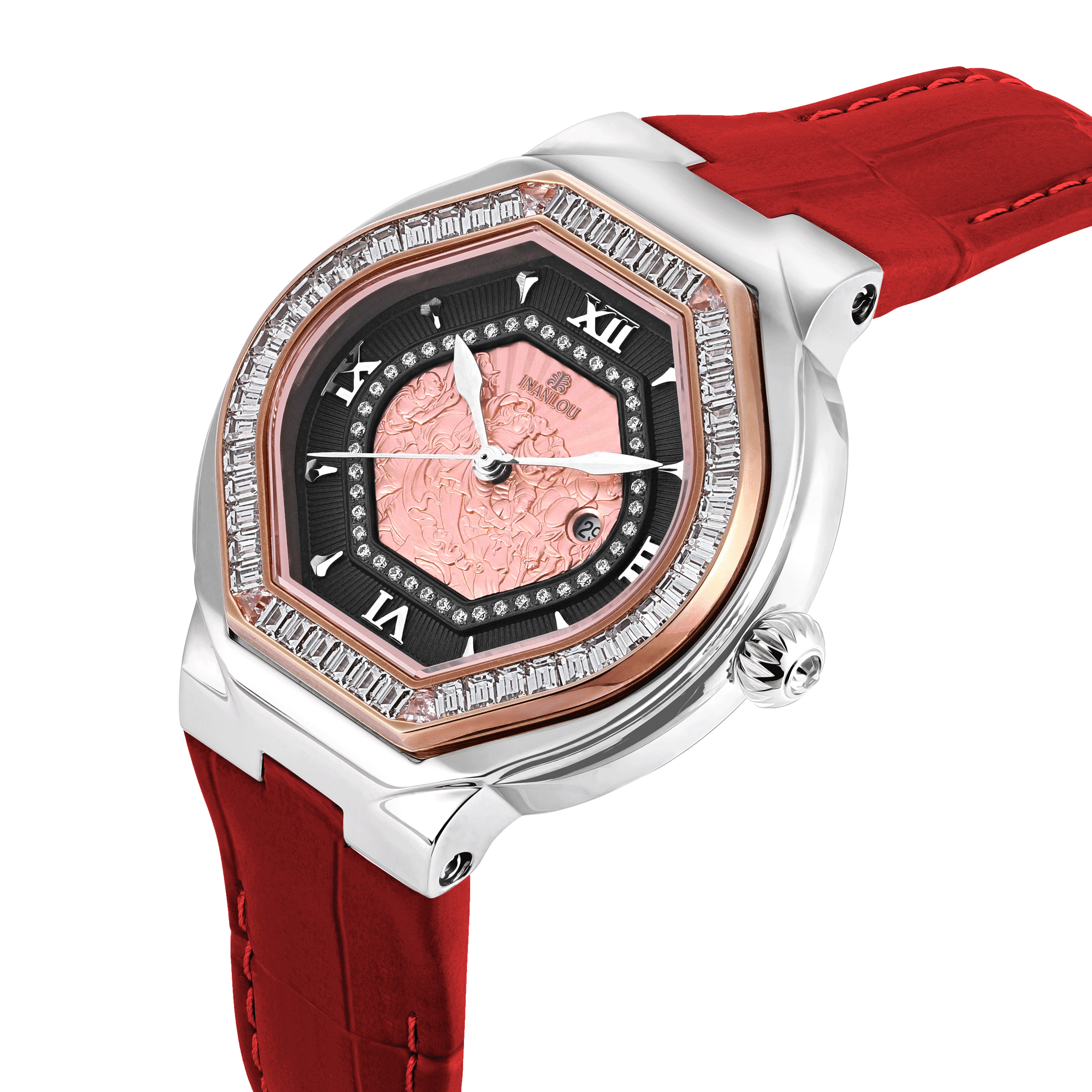 INANLOU puts over years of watchmaking excellence at the service of creating the most delicate and reliable women’s watches. From timeless gold watches encrusted with diamonds to the audacious flair of a red leather bracelet, discover the elegant ladies’ watches selected from the INANLOU Collections.