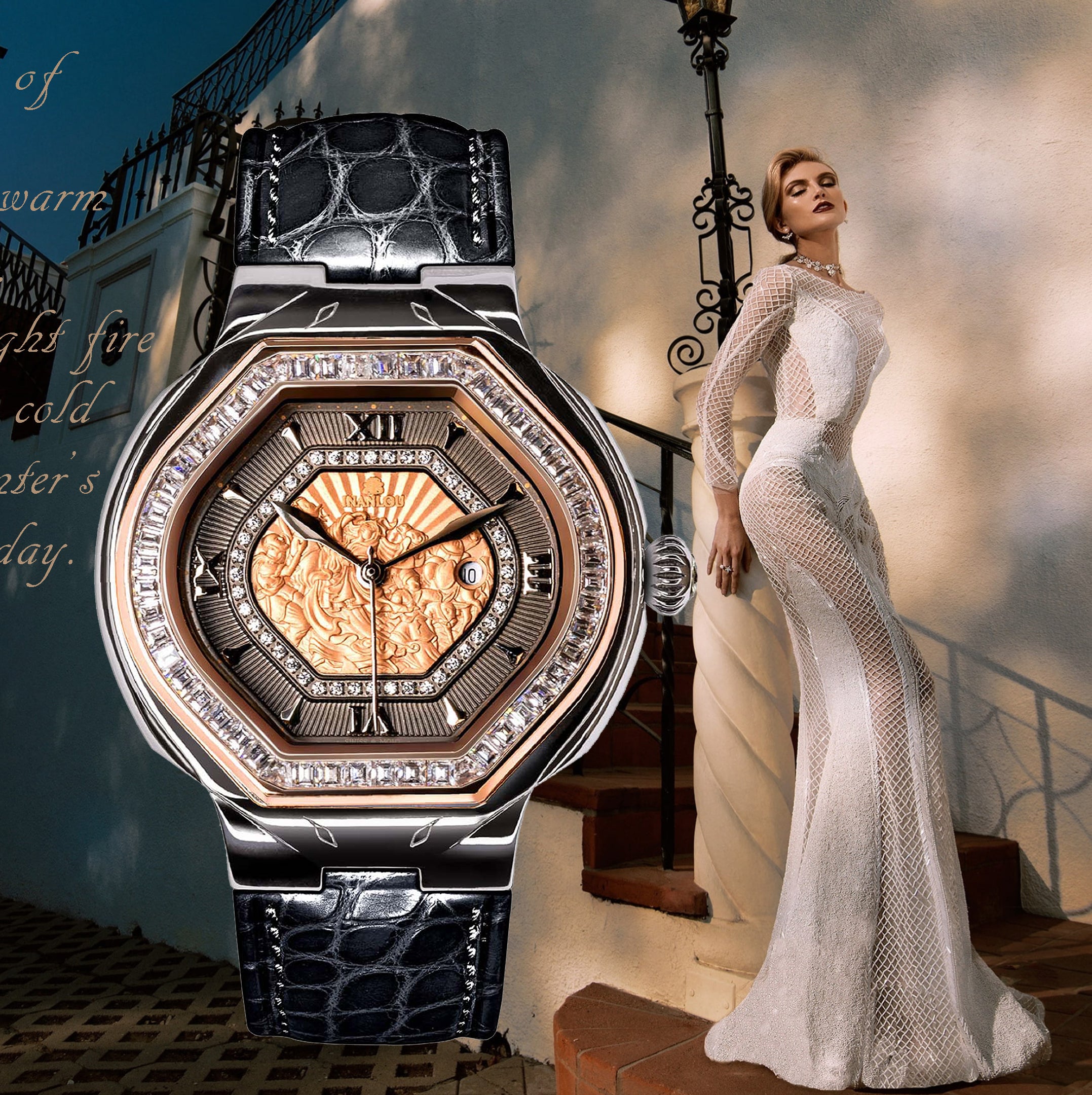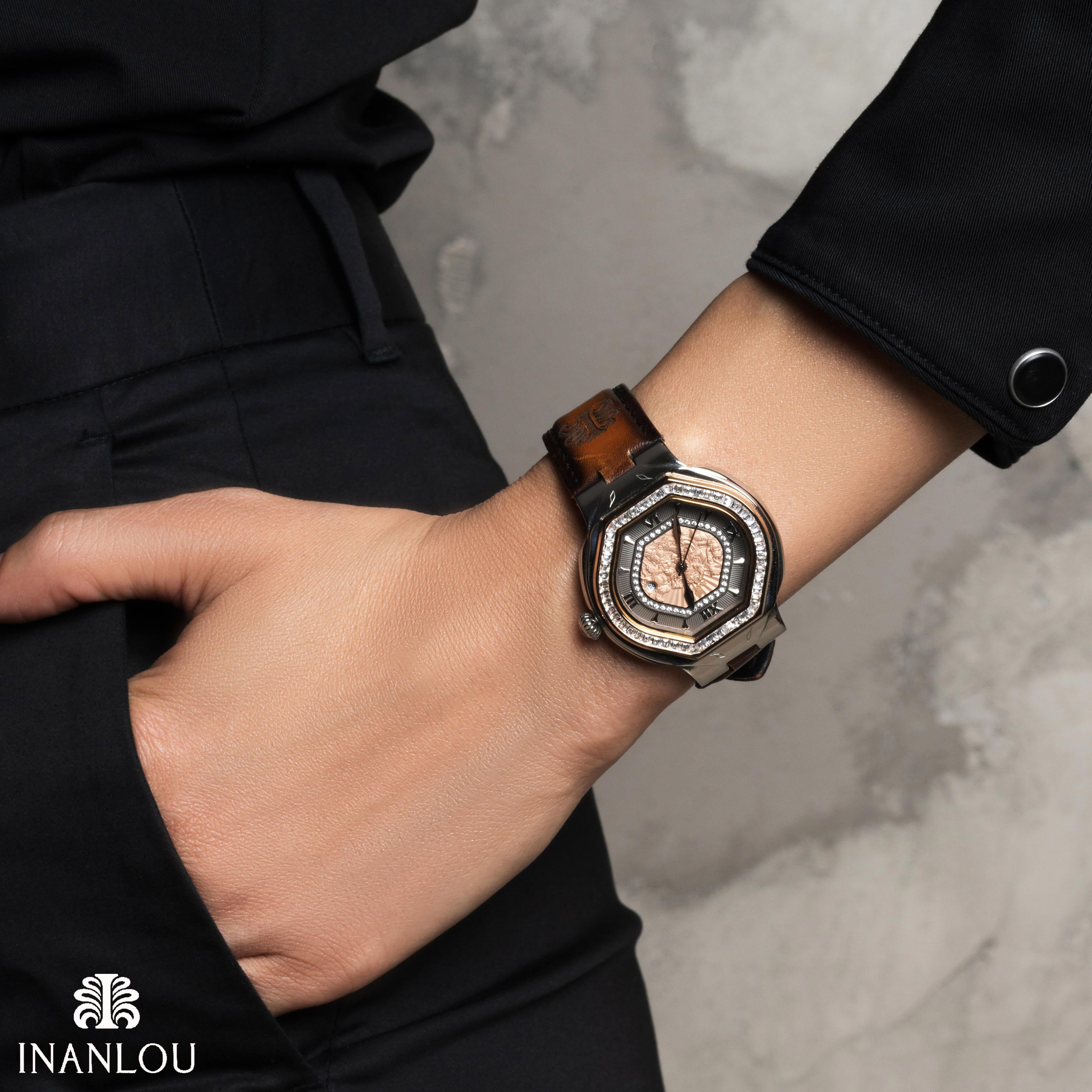 INANLOU puts over years of watchmaking excellence at the service of creating the most delicate and reliable women’s watches. From timeless gold watches encrusted with diamonds to the audacious flair of a red leather bracelet, discover the elegant ladies’ watches selected from the INANLOU Collections.