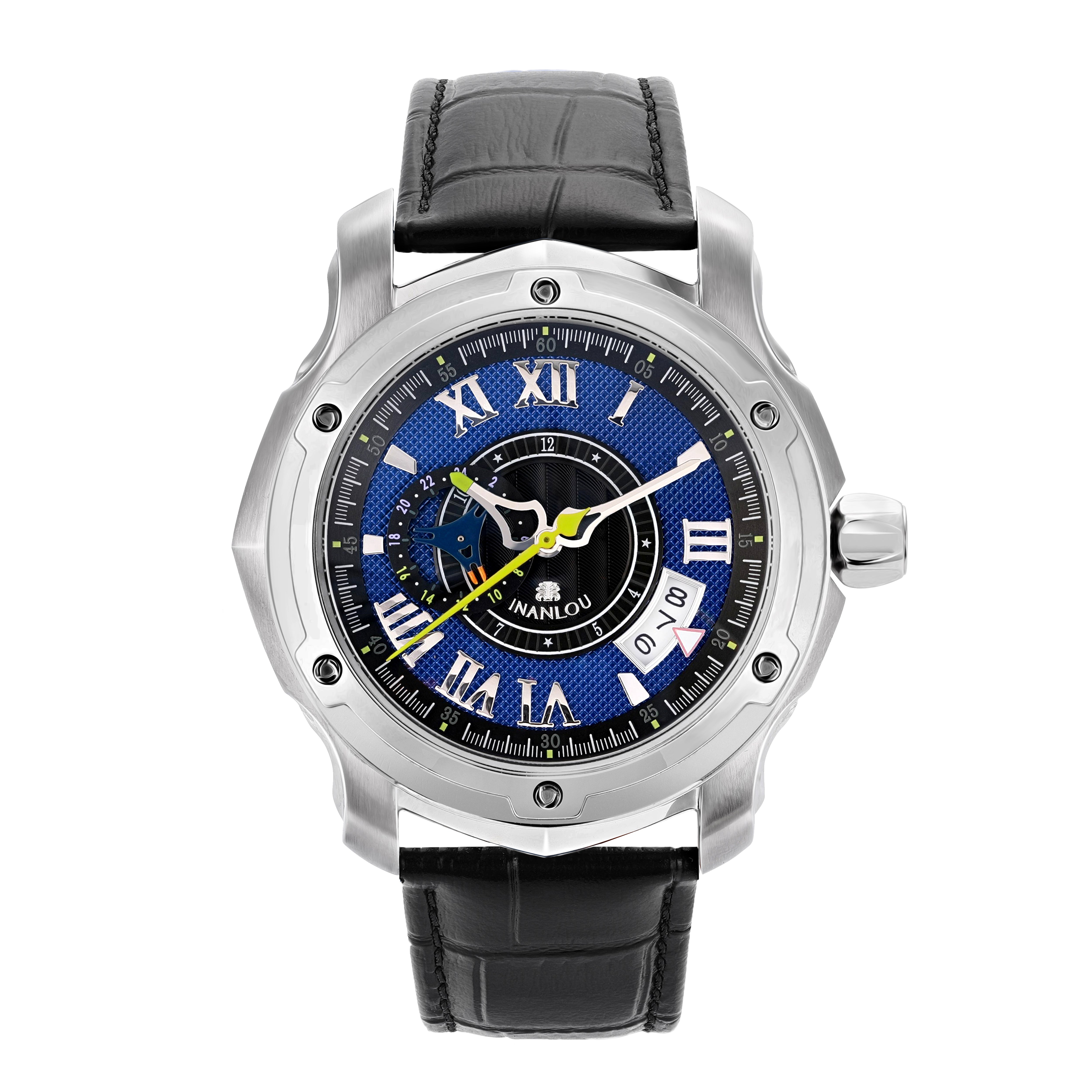 The combination of Latin numerals and signs on the dial accompanied with other details like the date marker at the four o'clock position makes the dial look sport and classic but in the modern interpretation. The hands were designed compatible with the case and dial. The dial also features a twenty-four-hour marker incompatible with other details. This watch is available in two colors with a genuine leather strap, stainless steel strap, and rubber bands.