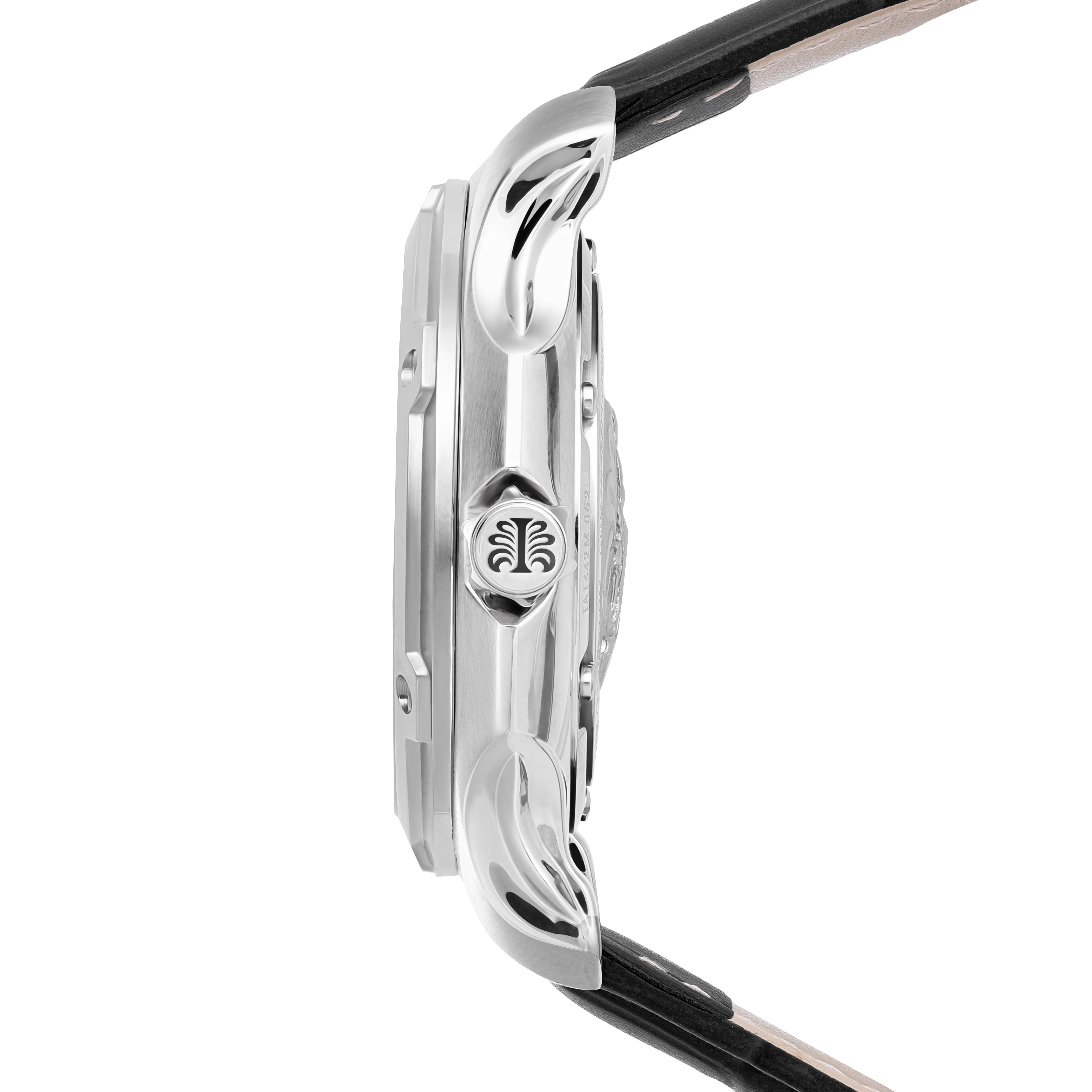 The distinctive case of the watch plus its bezel with six stainless steel bolts on it and its large crown makes it look more sporty. The dial was made of a combination of multiple layers consisting of polished steel, guilloche steel layer, marker ring of 60 seconds, and other harmonious details that make a distinctive look to this unique watch.